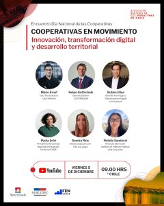 Con el propósito de proyectar el rol de las cooperativas desde una mirada descentralizada, digital e inclusiva, la Asociación Nacional de Cooperativas (ANCCh) realizará el próximo viernes 5 de diciembre el seminario “Cooperativas en movimiento: Innovación, transformación digital y desarrollo territorial”, un encuentro diseñado para reunir a representantes del mundo cooperativo, la academia y autoridades públicas en el contexto del Año Internacional de las Cooperativas.